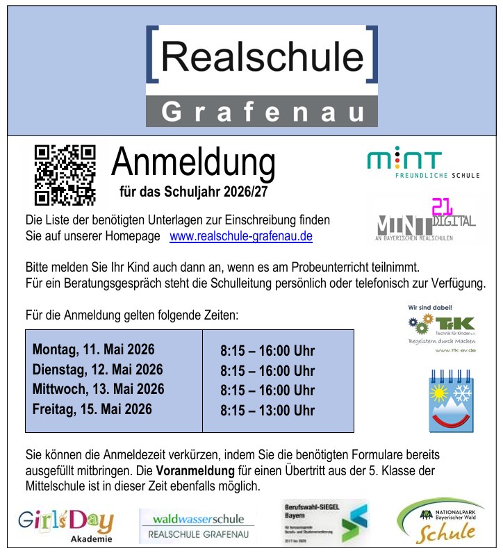 Herzlich Willkommen auf der Website der Realschule Grafenau